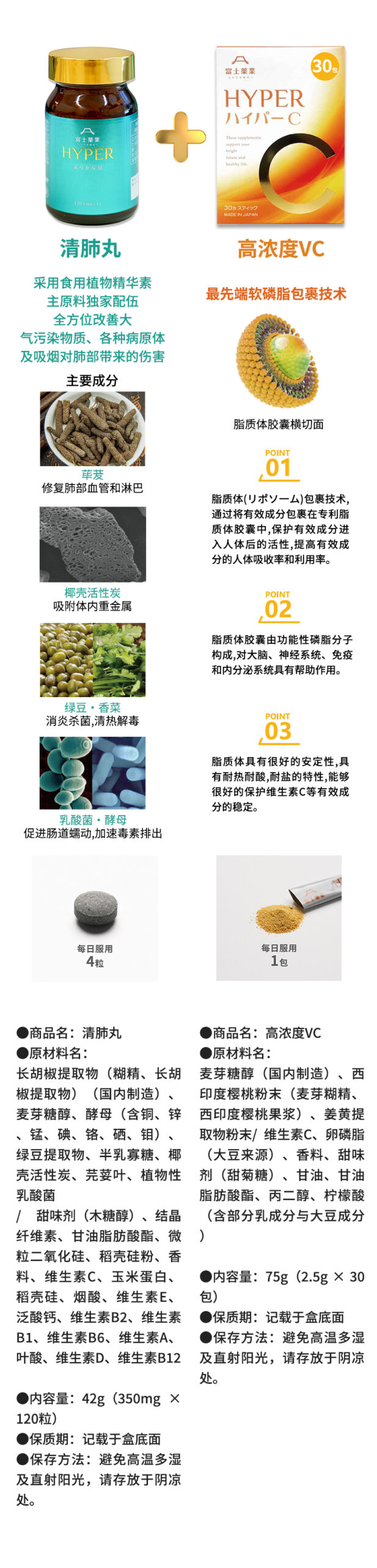 Top 精密搭配系列 肺机能修复套餐 为呼吸系统打造清新而强健的防护力 肺机能修复 现代环境中,空气污染、季节变化、吸烟二手烟以及工作压力,都会让肺部承受额外负担,影响呼吸质量与整体活力。本组合由“长命草”与“高浓度VC”共同构成,为肺部提供高效、自然、全方位的滋养支持。这款组合特别适合关注呼吸道保养、经常处于空调环境、空气不佳地区或希望增强肺部抵抗力的人群。以自然与科学的双向力量,为您的每一次呼吸带来更安心的守护。 商品价格: ¥3960.00